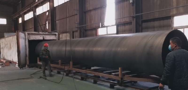 4. 固化冷卻。對涂塑已經固化的涂塑鋼管進行冷卻,放入庫存貨場等待檢驗。